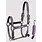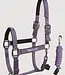 Deze set met halster en touw bestaat uit een verstelbaar halster met witte borduursels en een bijpas..