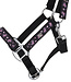 De vrolijke print geeft een leuke uitstraling. De verstelbare neusriem en kopstuk zorgen voor een ideale pasvorm. Het halster is zacht onderlegd bij zowel de neus als het kopstuk en heeft een schattige Q-pin in de vorm van een hartje.