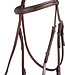 Het hoofdstel luxe lage neusriem is van degelijke kwaliteit en gestikt met wit stiksel. Het hoofdstel is voorzien van een lage neusriem, zilverkleurige RVS fournituren en blinde sluitingen aan de bakstukken. Dit hoofdstel is gemaakt van rundleer. De neusriem en frontriem zijn met zacht leer onderlegd dat aangenaam is voor het paard. Het witte sierstiksel op de neusriem en frontriem geeft een klassieke uitstraling. Een compleet hoofdstel met webband teugels voorzien van blinde sluitingen.