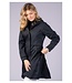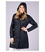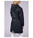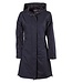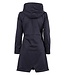 Waterdichte en ademende lange jas met vaste capuchon, twee zakken met drukknoopsluiting, binnenzak met ritssluiting, tweeweg ritssluiting en splitten met rits aan de zijkant met een stoffen inzet. Met drukknoop om de capuchon op de rug te borgen.
