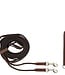 De uiteinden van deze slofteugel zijn vervaardigd van nylon koord (8 mm breed). Het voordeel van koord is, dat het makkelijker door de bitringen glijdt. De teugelgedeelten zijn gemaakt van zacht leder (18 mm breed). De koorden uiteinden worden met behulp van twee musketonhaken vastgemaakt aan de singel. Als de singel niet over een bevestigingsring beschikt, kan de meegeleverde lederen singellus met D-ring gebruikt worden. De singellus is voorzien van een lederen passant en van een extra beschermflap voor de D-ring. De slofteugel is uitgerust met glanzende, zilverkleurige fournituren van verchroomd messing. Een slofteugel wordt gebruikt om een juiste hoofdhouding te verkrijgen. Als het paard het hoofd te hoog houdt, zal de slofteugel inwerken en druk geven op het bit. Als het paard nageeft, zal de druk afnemen. Maat Cob: 0,95 m teugel + 1,125 m koord = 2,075 m (4,15 m totale lengte) Maat Full: 1,3 m teugel + 1,2 m koord = 2,5 m (5 m totale lengte)