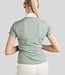 Het Pearl wedstrijdshirt valt op door de prachtige plooien die sierlijk van de kraag naar de schouders lopen. Onder de onderste rij plooien voegt een rij glinsterende gunmetal kristallen een subtiele en luxueuze touch toe. Op de borst maakt een Montar-logo in bijpassende gunmetal kristallen de look compleet. De combinatie van delicate details en een strak design geeft het shirt een verfijnde en vrouwelijke uitstraling.