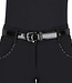Riem Lagos is een lakleren riem en is voorzien van een zilverkleurige RVS gesp. De riem heeft een vaste riemlus met grote en kleinere strass-steentjes.